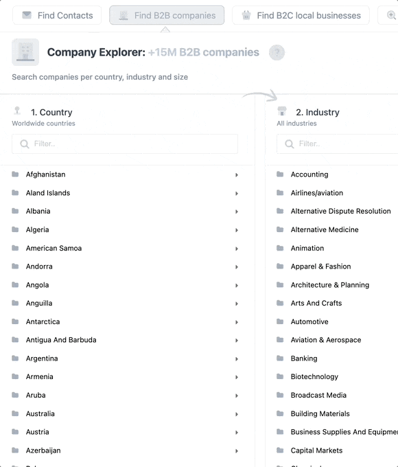 Extract emails and contacts from B2B social media. Find new leads in one click and create targeted lists. Our system will help you to find leads based on job title, location, country, industry, and company size.